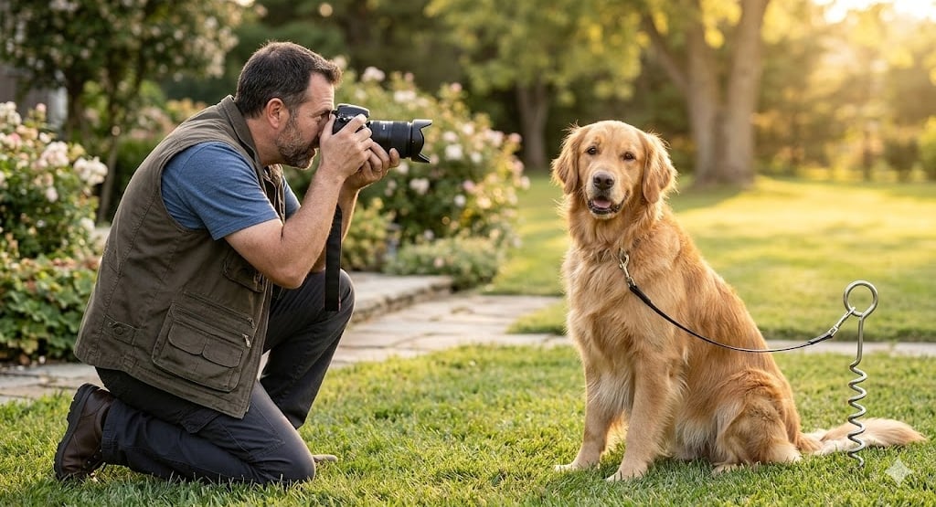 The Anchor: Use a ground stake and a thin leash to keep your dog in one spot so you don’t have to chase them.