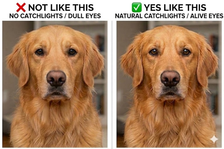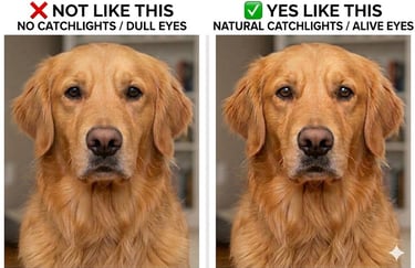 This is my favorite secret tip. You know when a portrait feels like the dog is looking deep into your soul? That is thanks to the catchlight—the tiny white reflection of light in their eyes.
